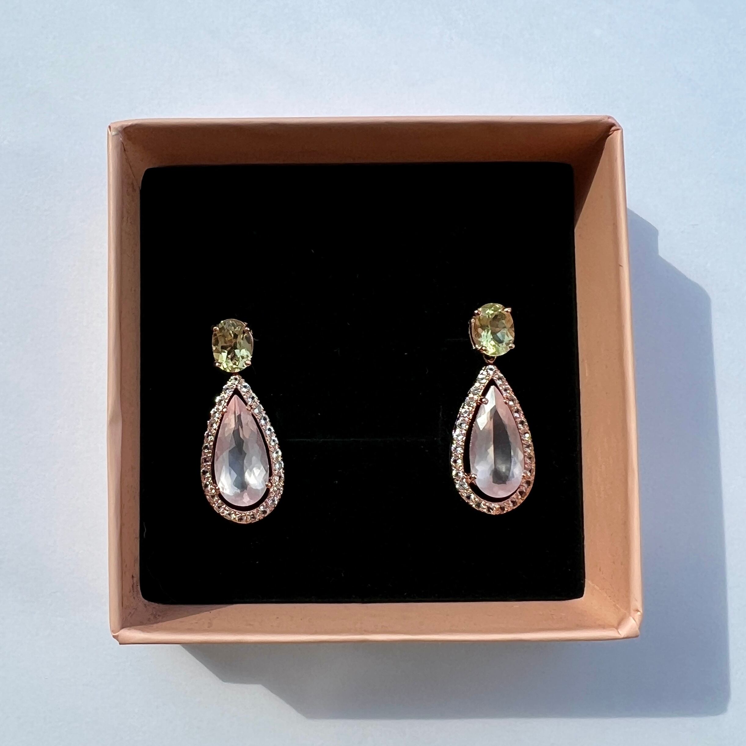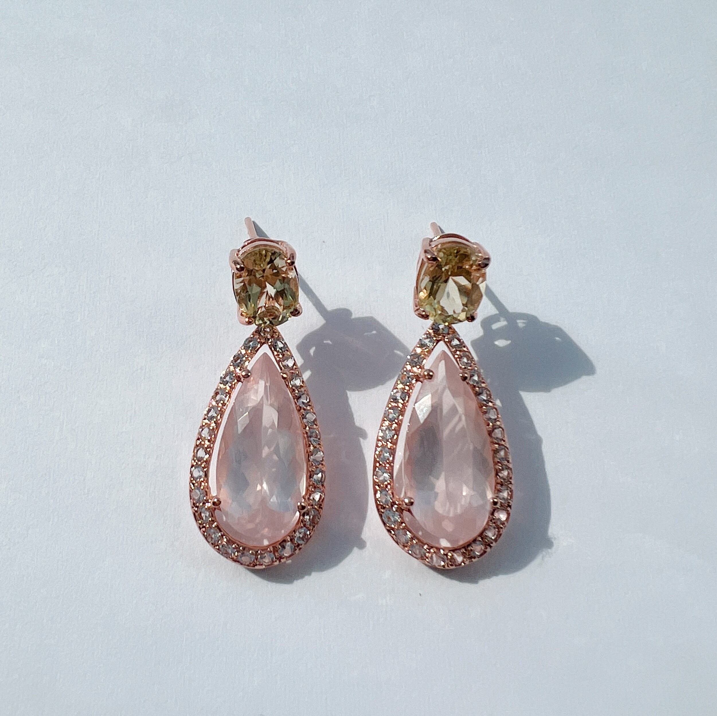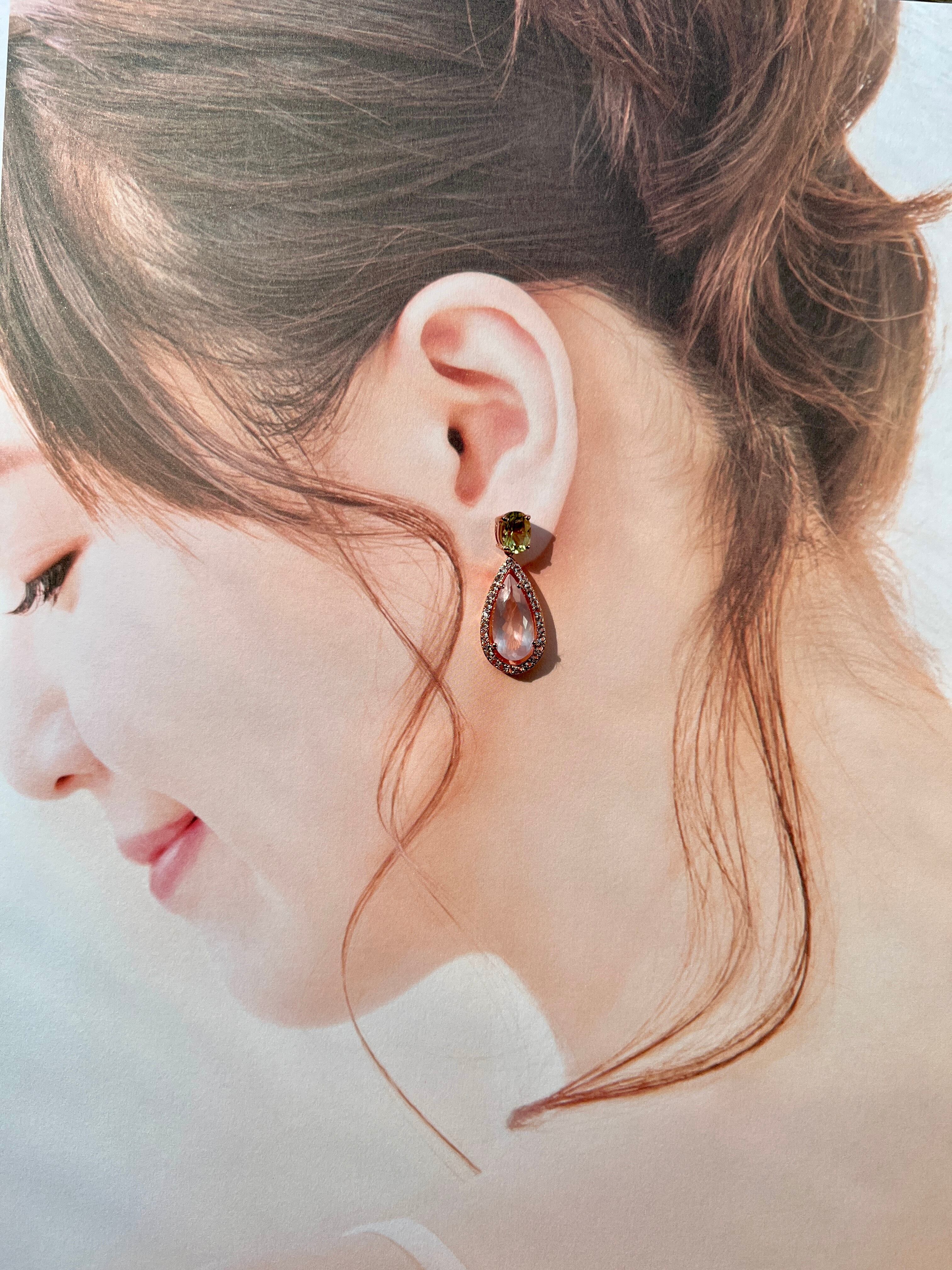 ※下のローズクォーツパーツを外して、レモンクォーツの一粒スタッドピアスとしてもご着用いただける2wayのデザインです。