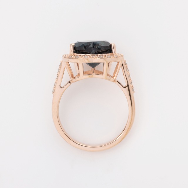 ハートシェイプ Halo Pave ダイヤモンドリング ロンドンブルートパーズ