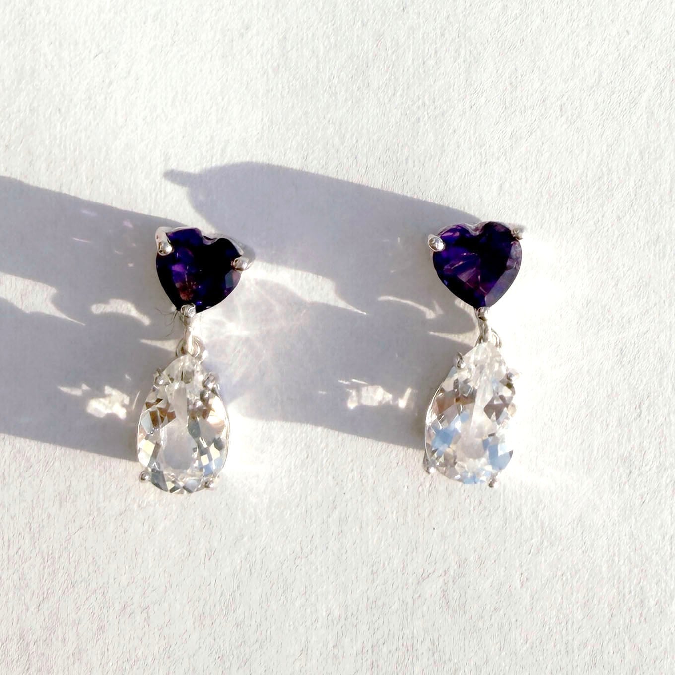 アメジスト・ホワイトトパーズ Heartピアス