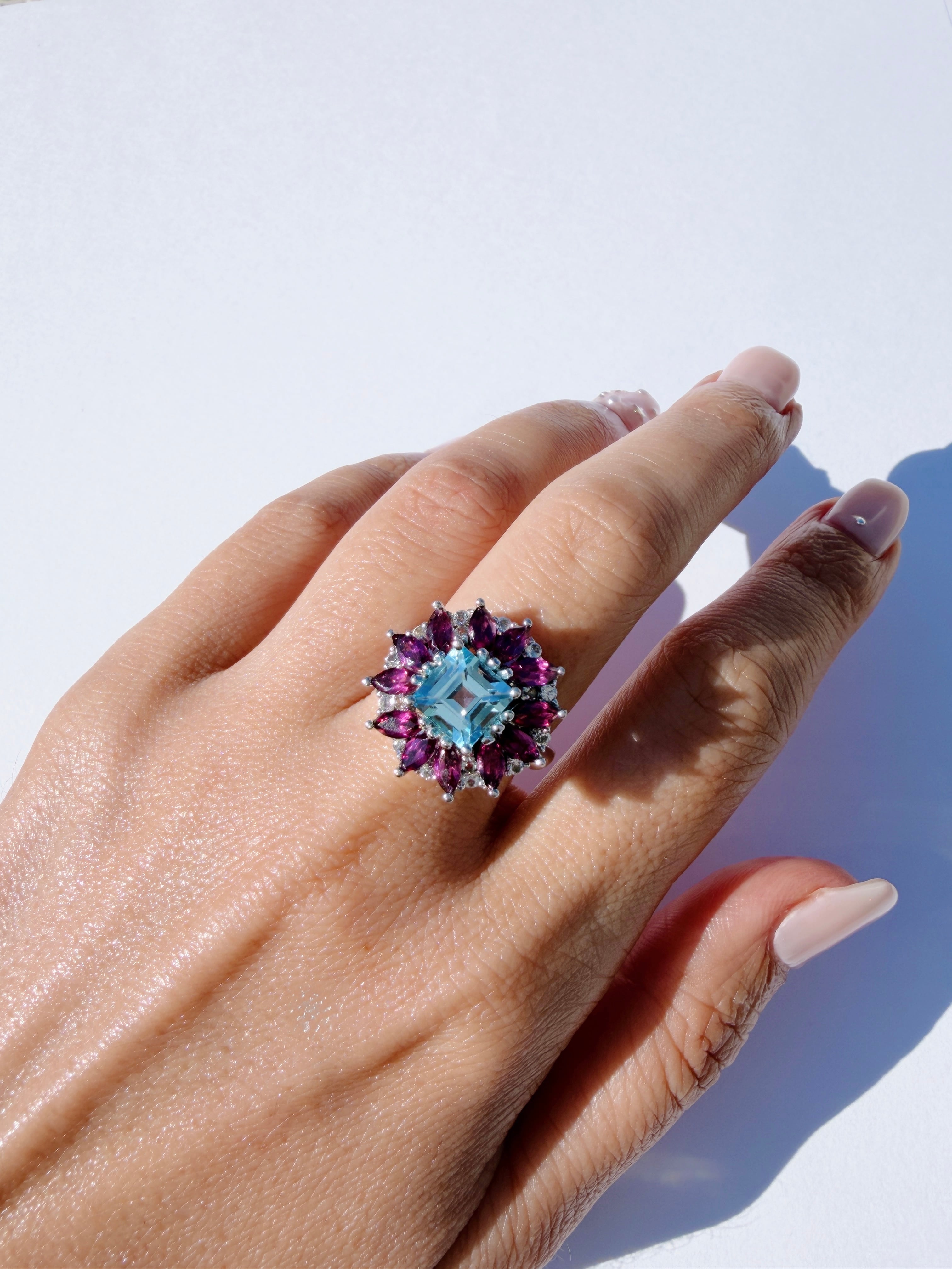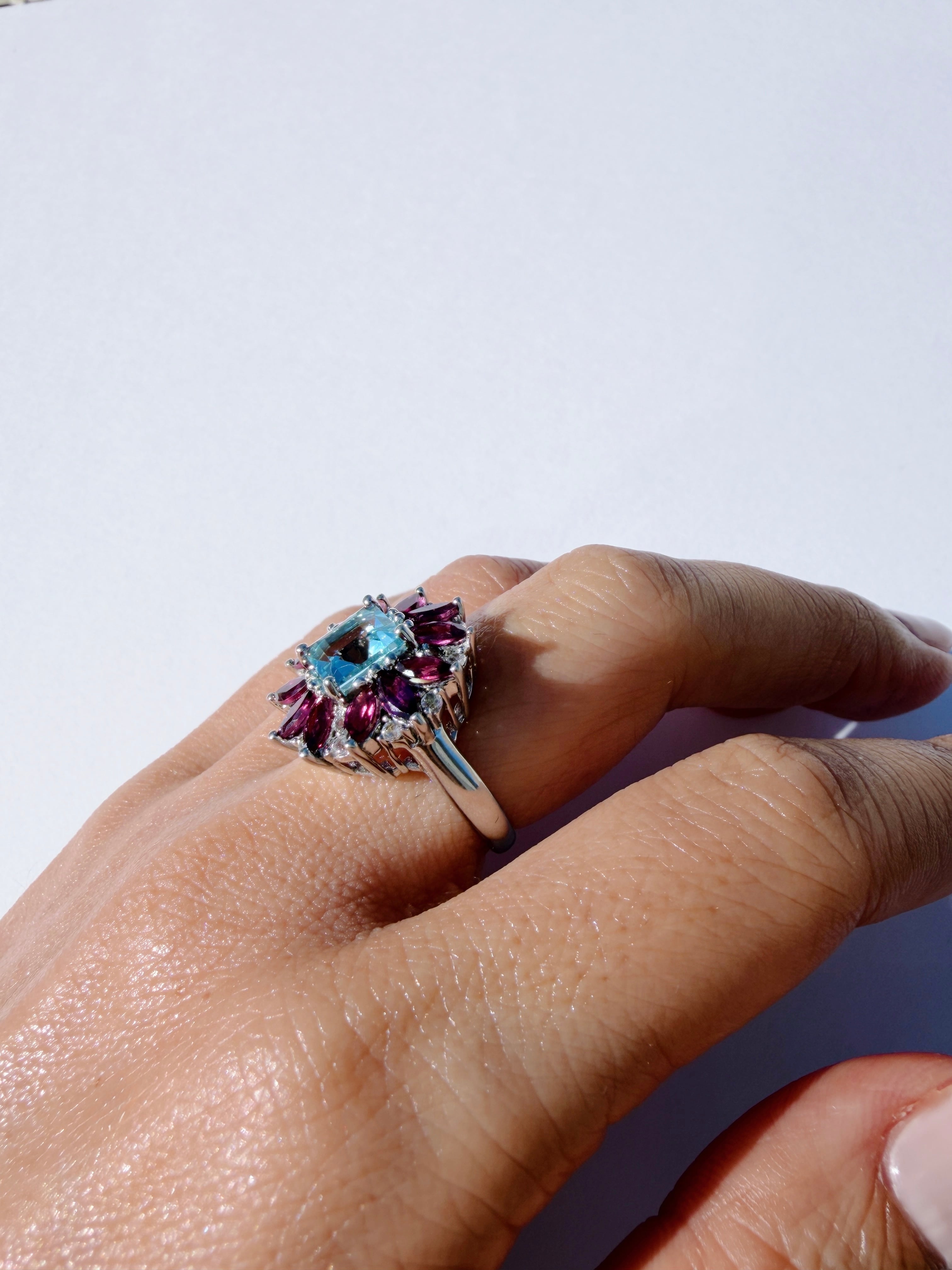 ロードライトガーネット ブルートパーズ Gem Flower Ring