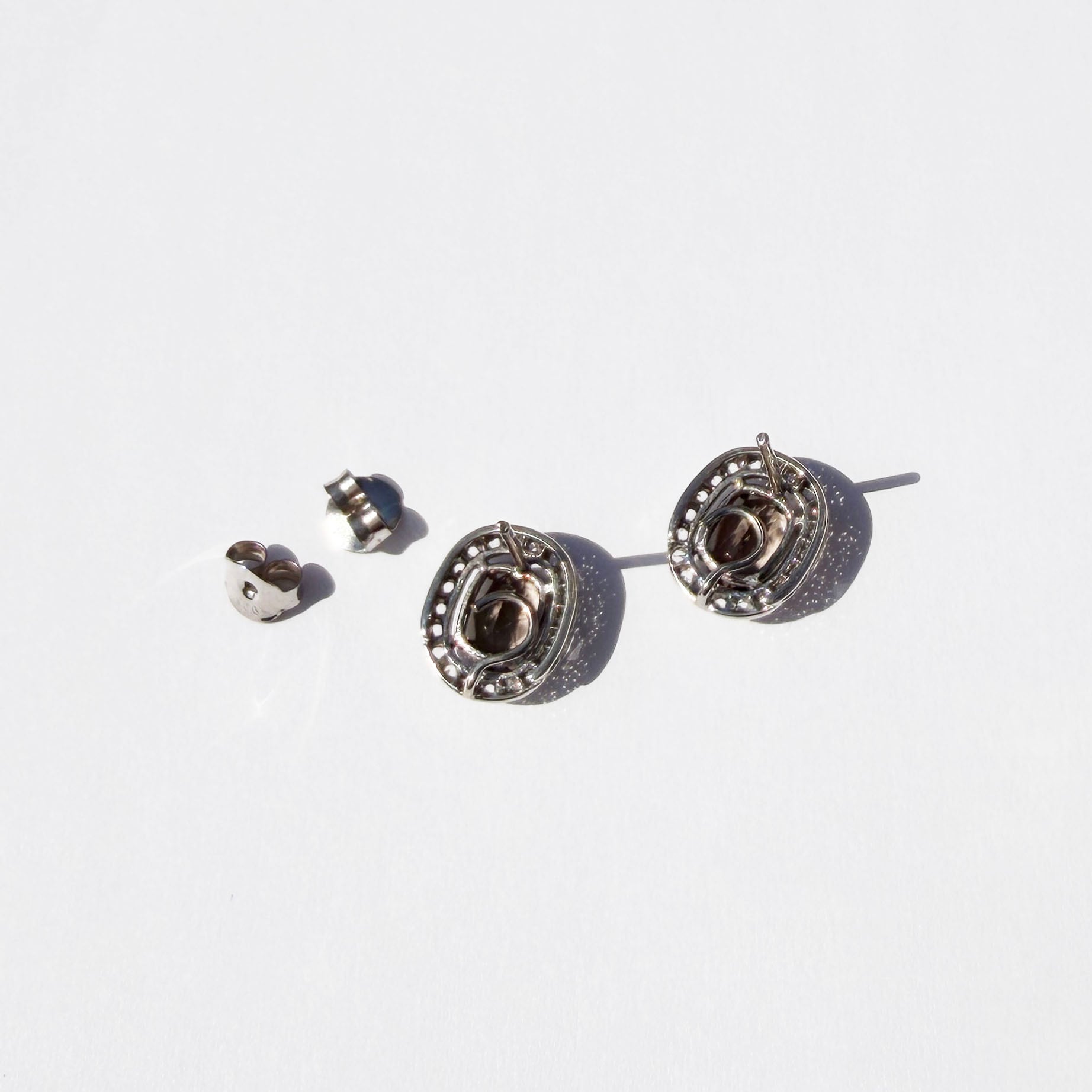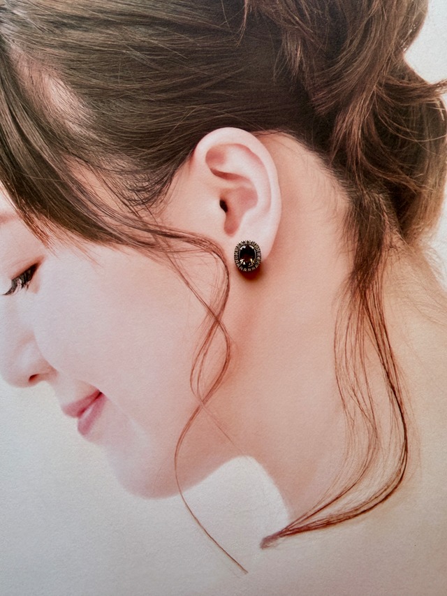 スモーキークォーツ Halo Oval ピアス