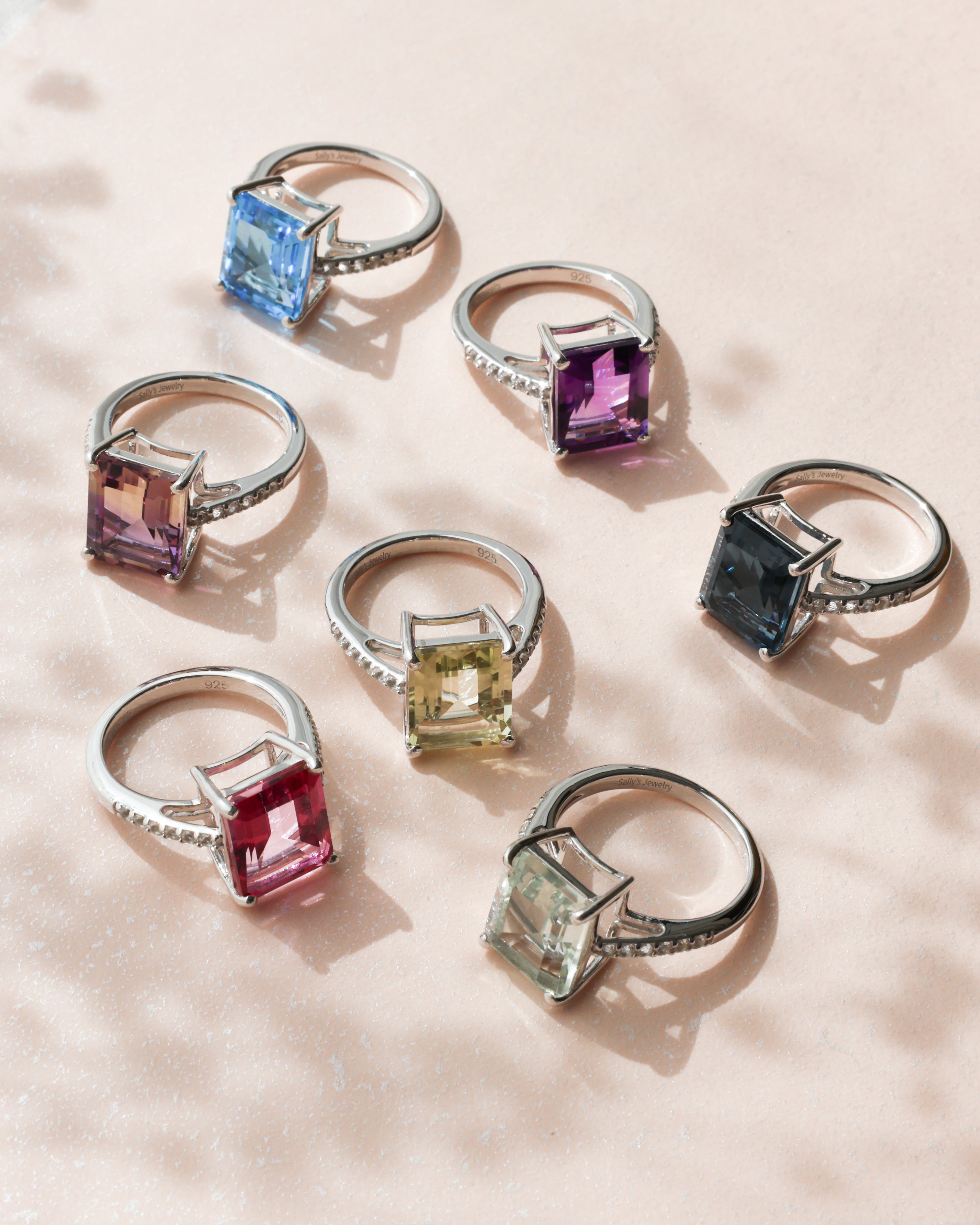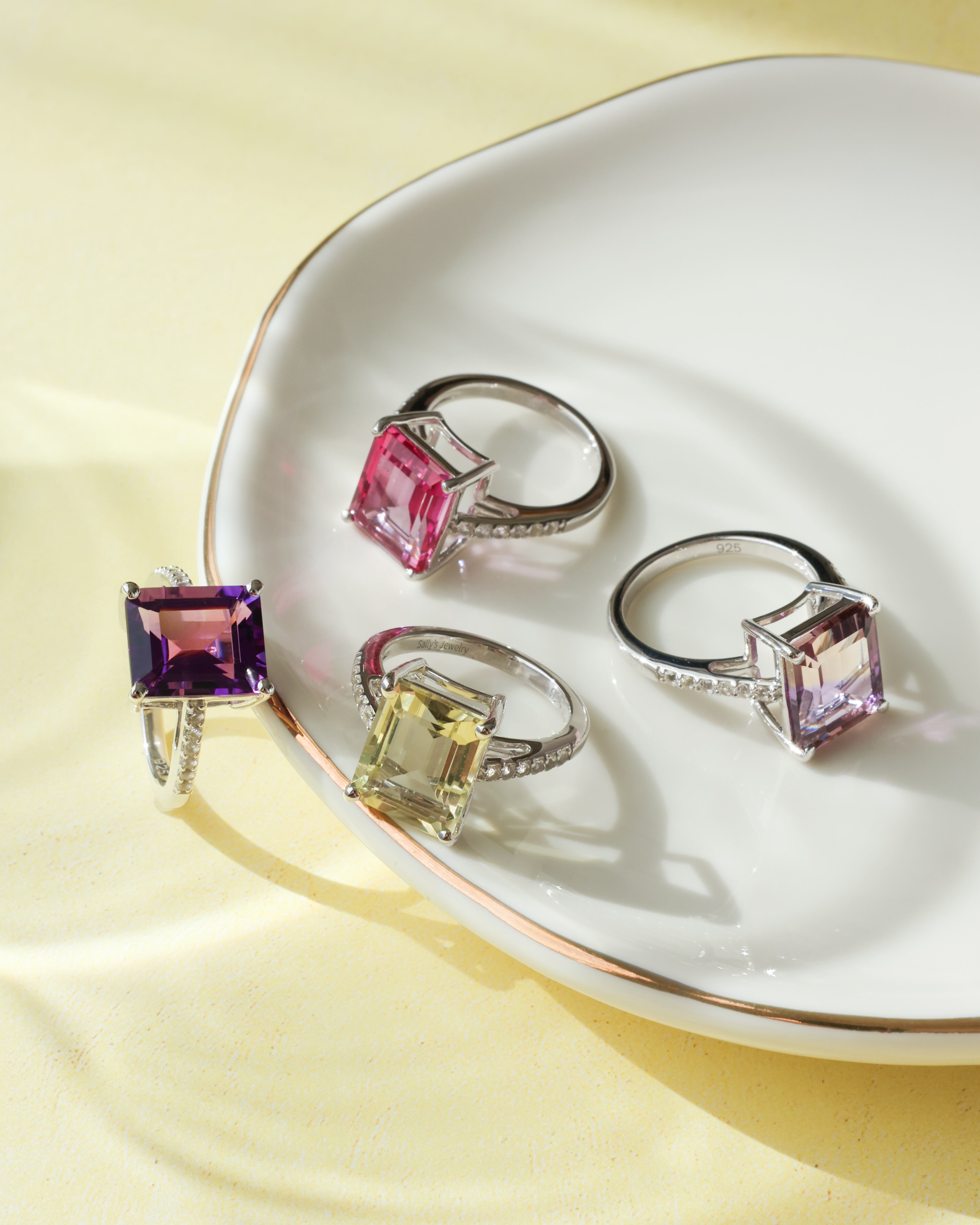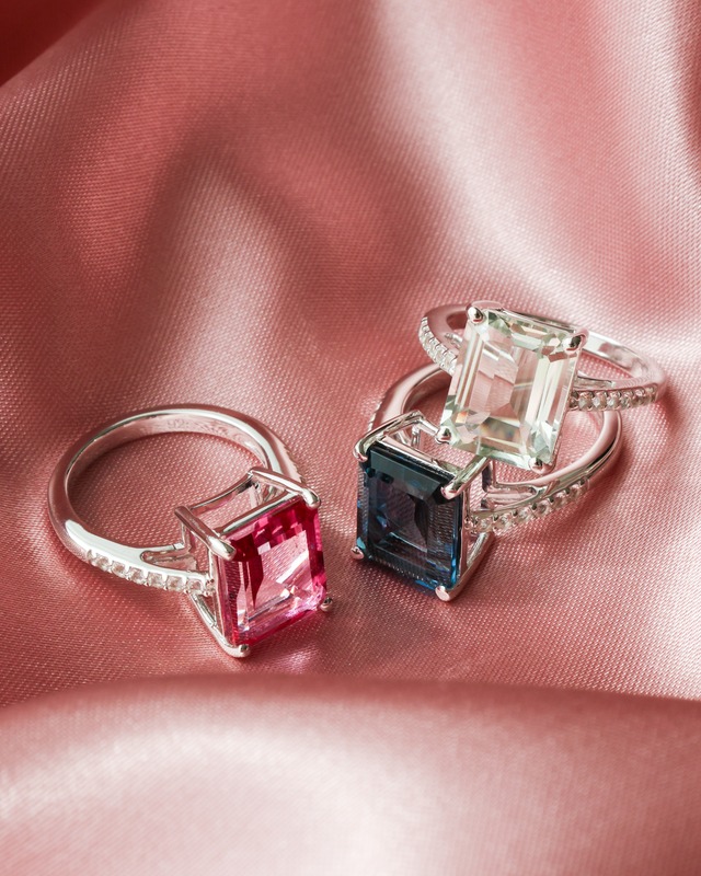 透明度が高くカラーストーンの色が綺麗に見える、オクタゴンカットの大粒ピンクトパーズに、