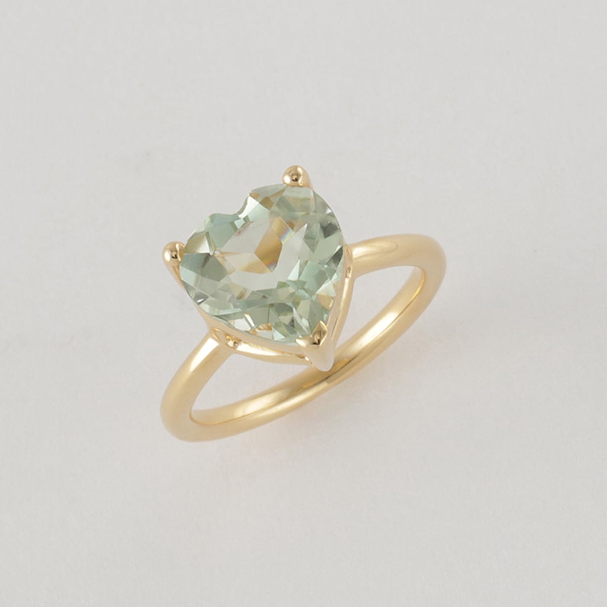 ハートにカッティングされた大粒のグリーンアメジストが輝くリングです。