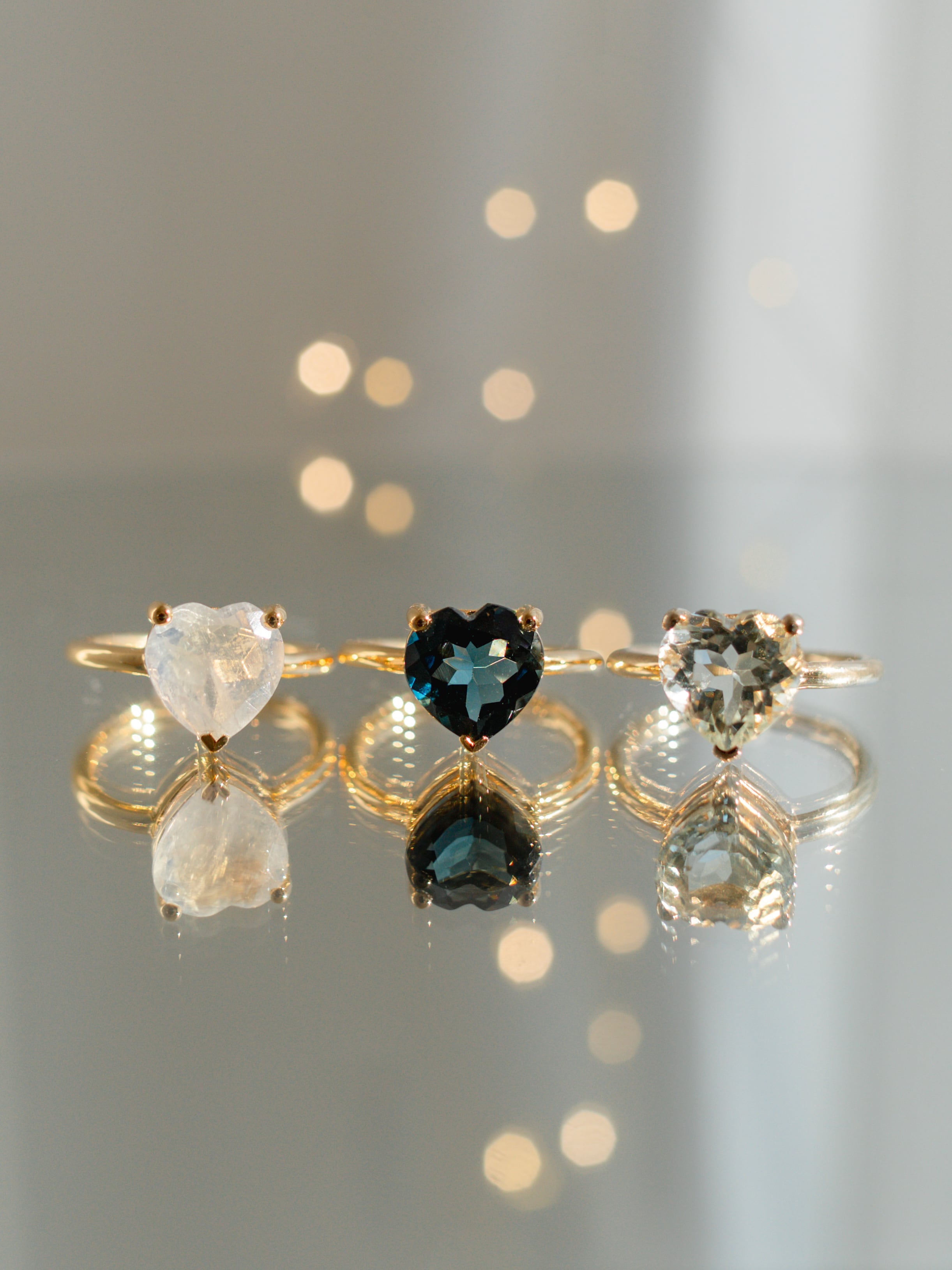 ハートにカッティングされた大粒のクリアクオーツが輝くリングです。