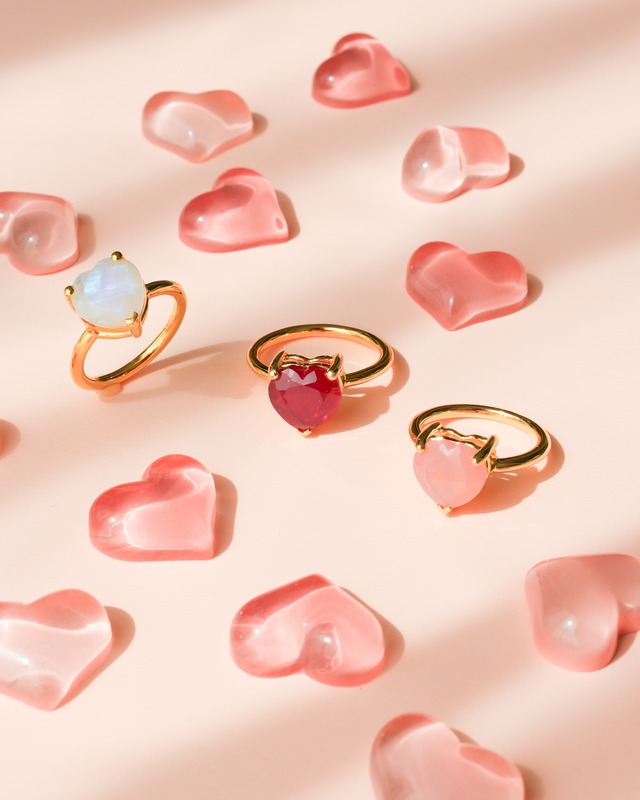 レインボームーンストーンハートシェイプリング イエローゴールド