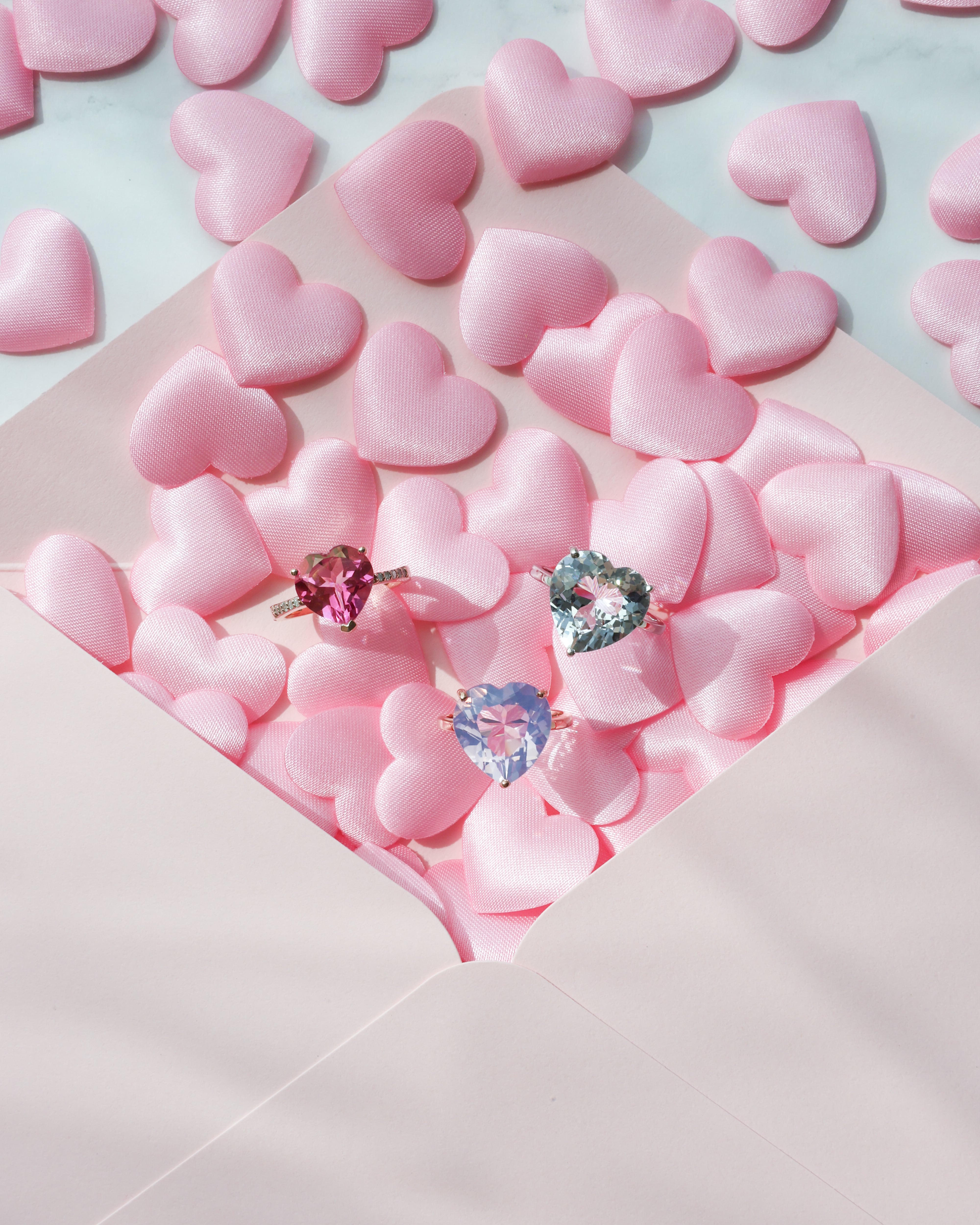 キラキラと輝くハートの大粒ストーンが可愛いリングです。
