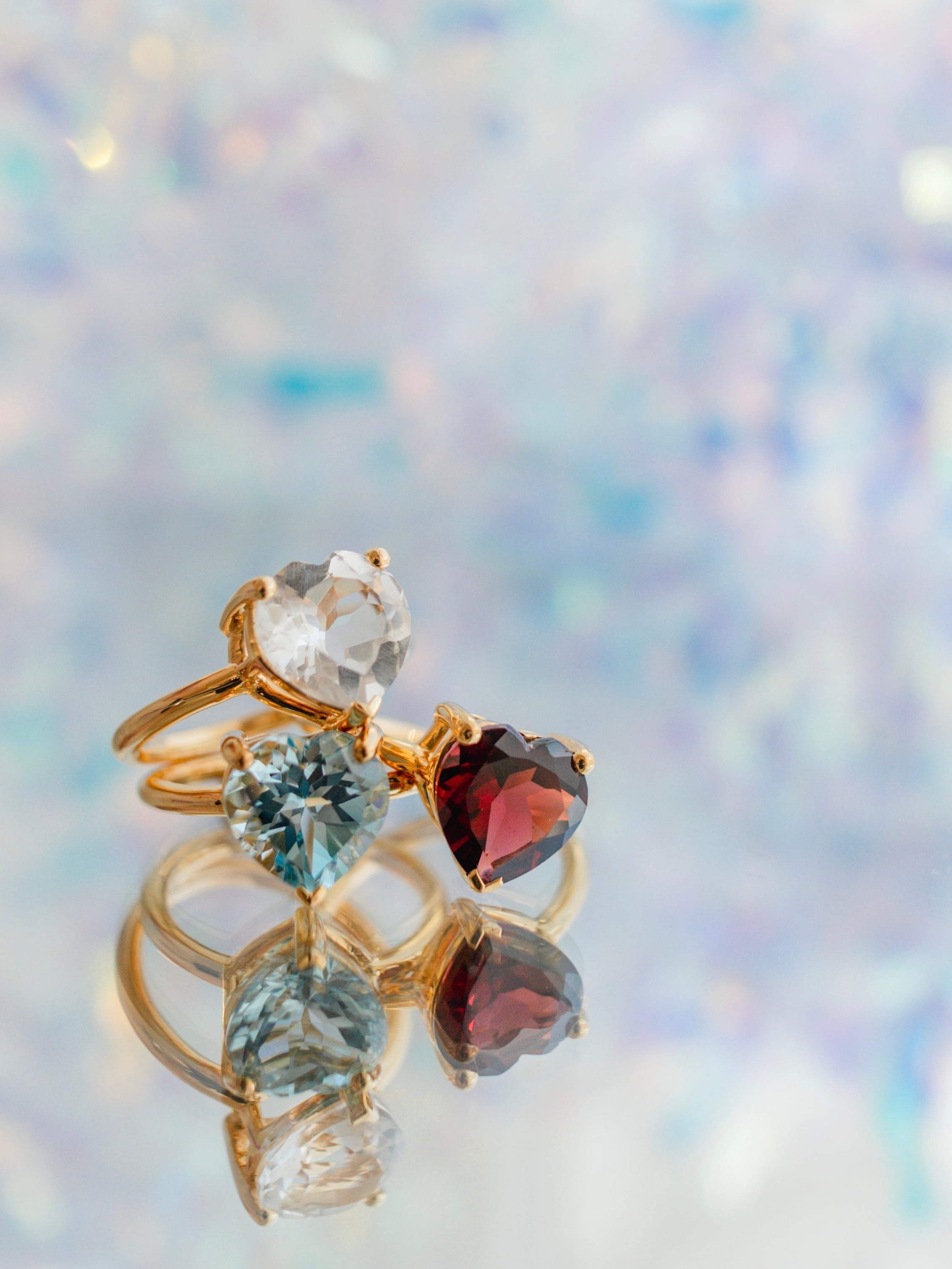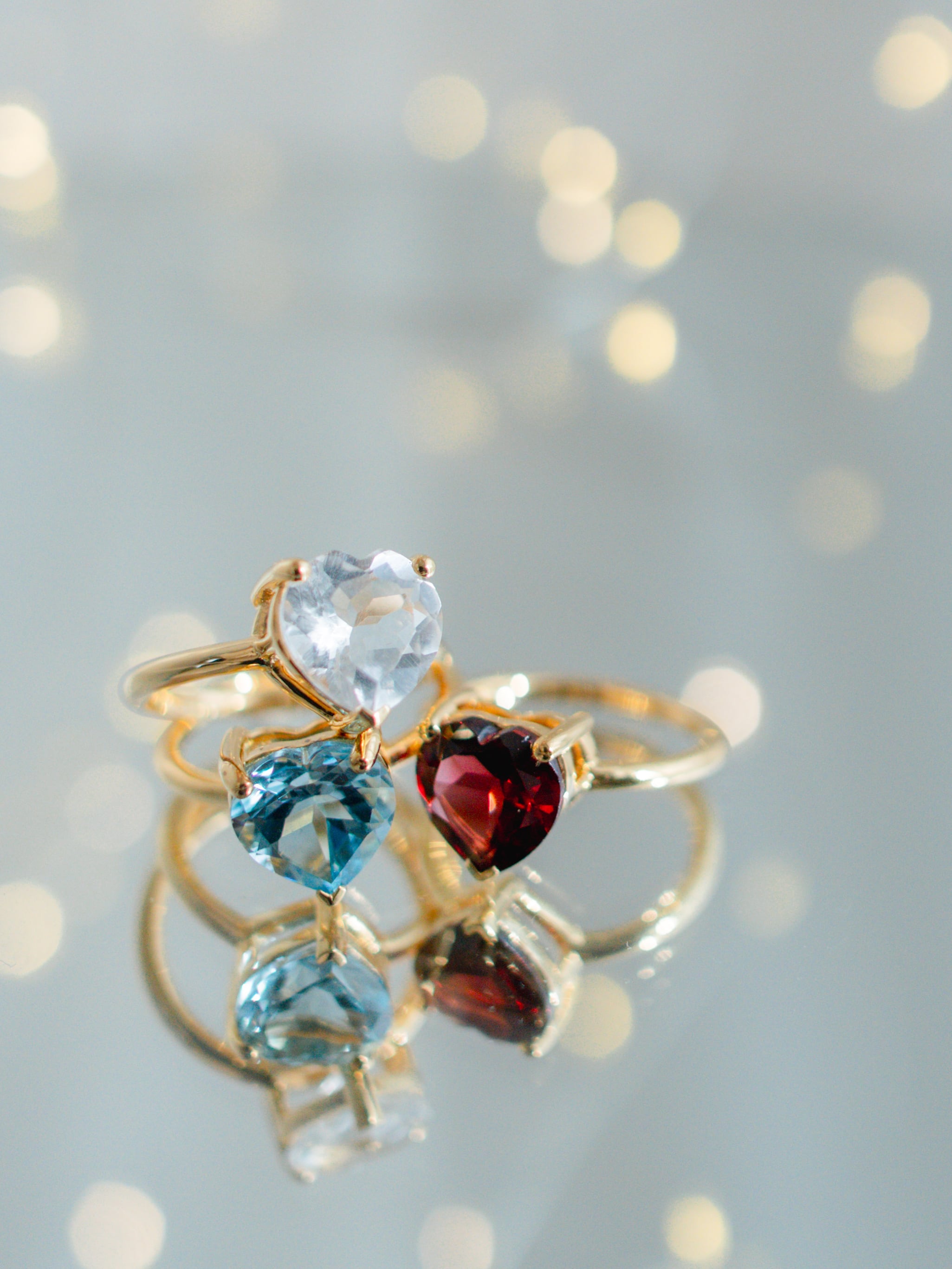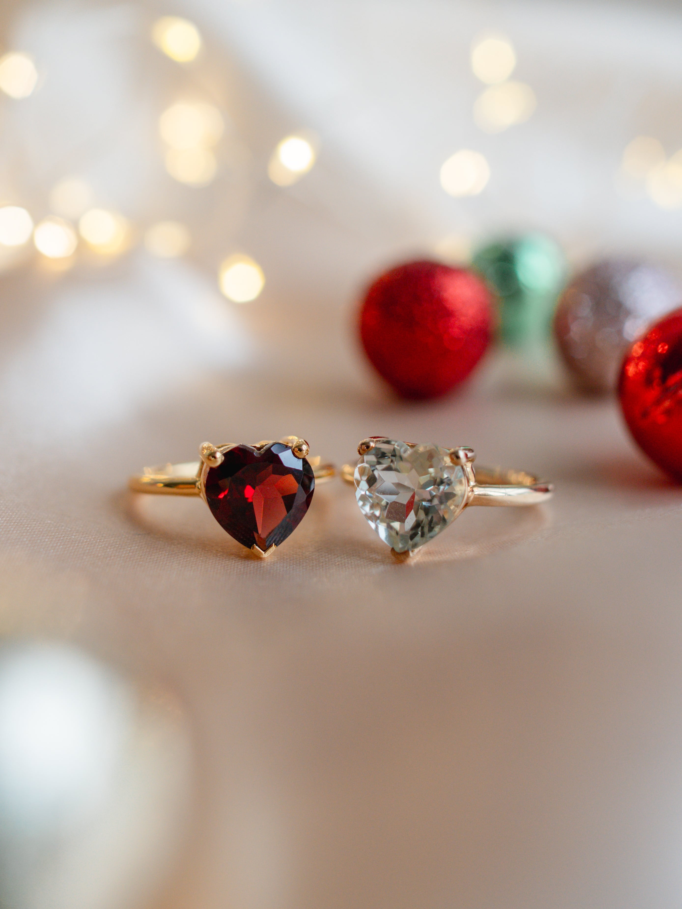 赤色がきれいなハートカットのガーネットを、シンプルにセッティングしたリングです。