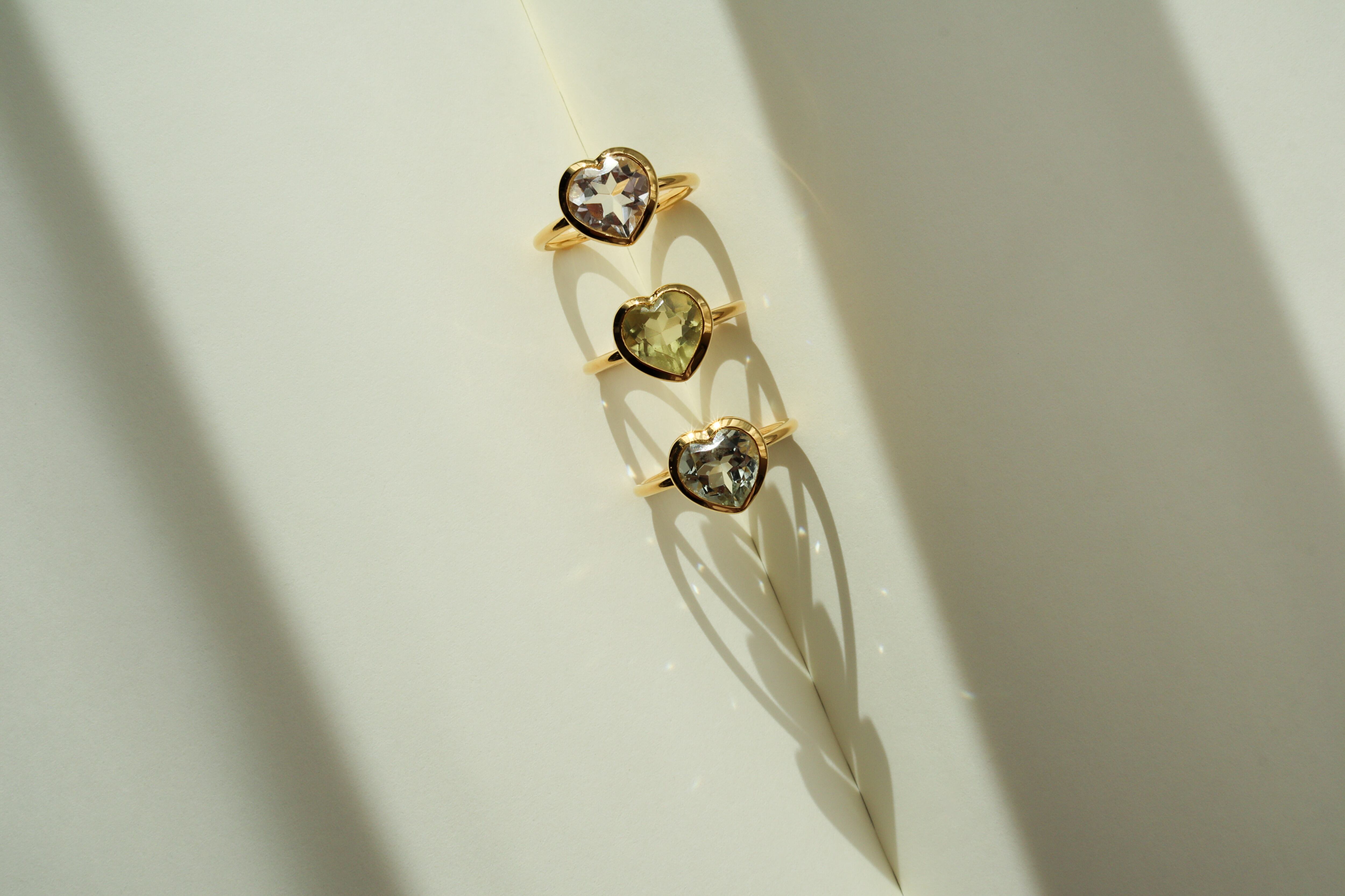 石にファセットカットの輝きがあるためお仕事やエレガントな装いにも合わせられ、