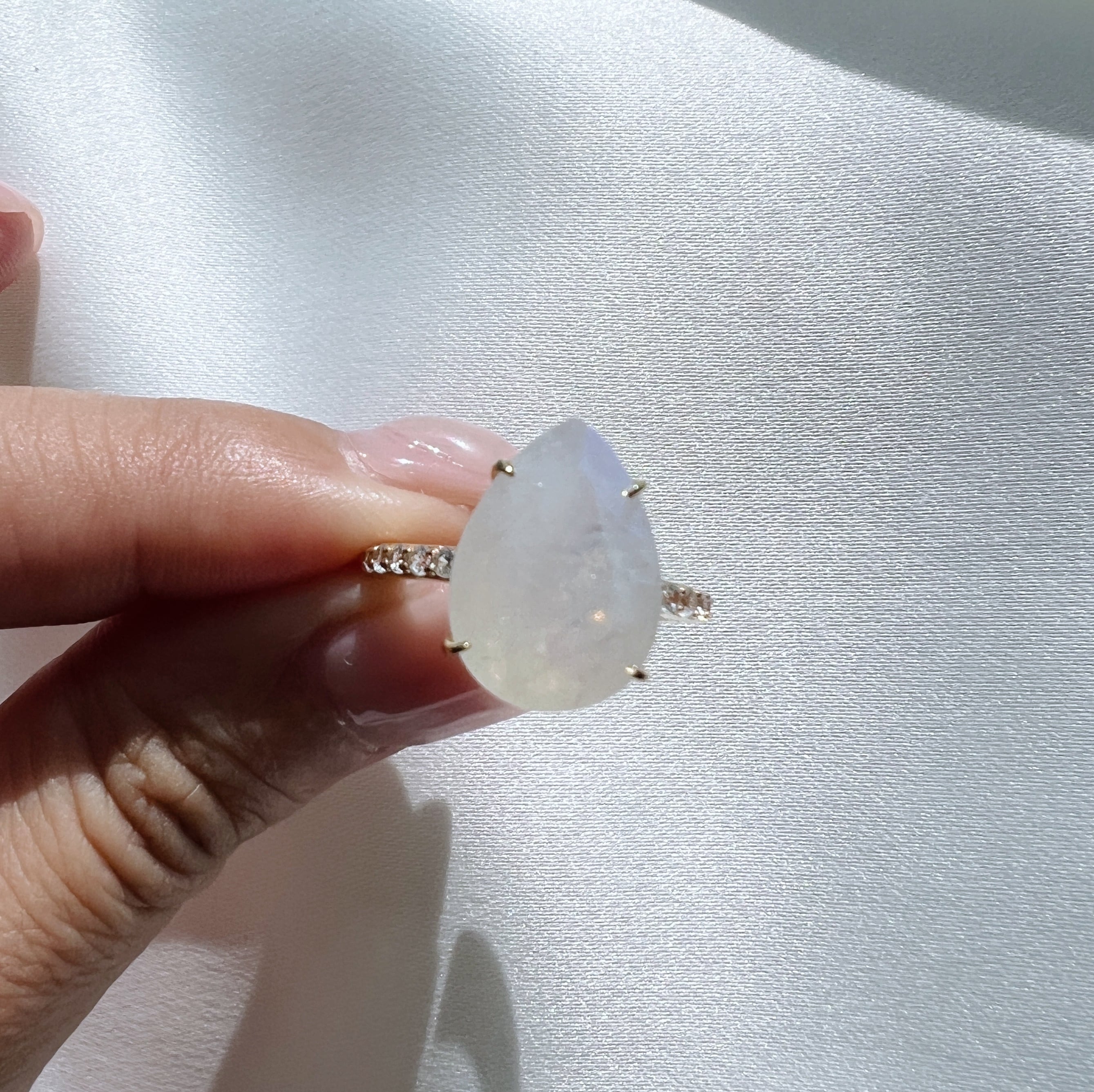 キラキラとした輝きがあるファンシーカットの大粒ストーンを