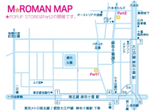 麻布十番駅から六本木方面に進むと、ちょうど中央くらいの位置にある、パート2での開催となります。<掲載のMAPをご参考ください。>